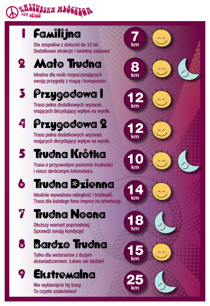 Nowość! Do tradycyjnych tras dziennych dołączają warianty nocne! Ci, którym Kaszubskiej Włóczęgi jest za mało, mogą spróbować swoich sił na dwóch trasach.